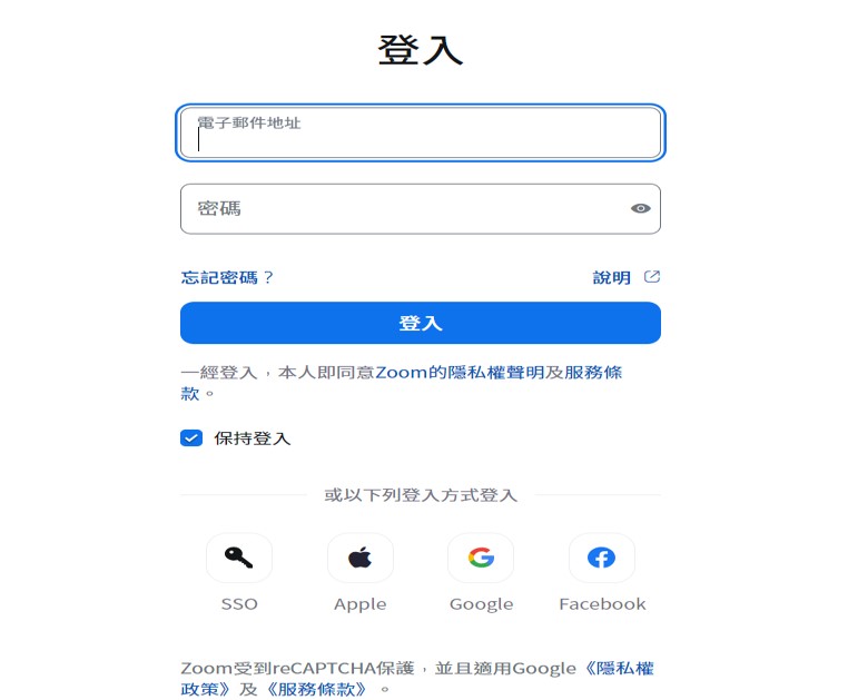 帳號擁有者:打開Zoom.com網站>點擊「登入」>請選擇與註冊時相同的登入方式。