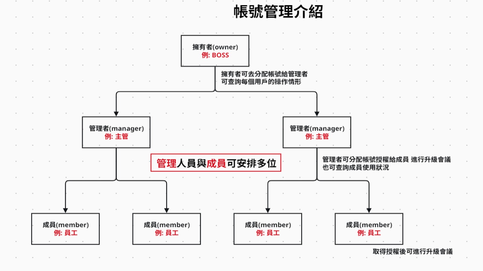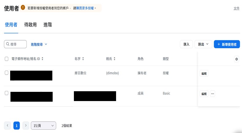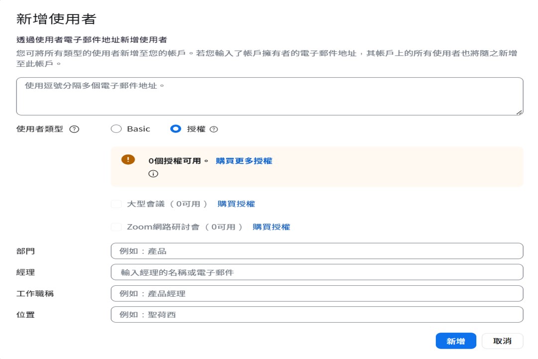 4.上框可透過輸入電郵來新增使用者並設定是否授權付費會議室。